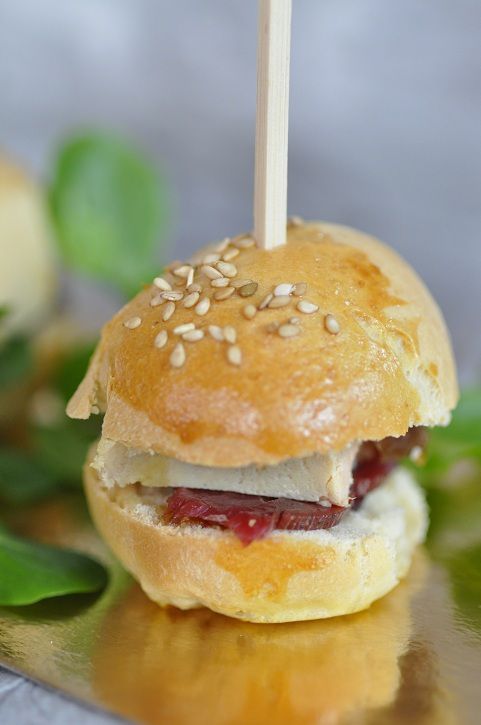 A la maison, nous mangeons souvent des mini hamburgers, je trouve le concept sympa. Je cuits mes petits pains, je dépose les garnitures sur la table et chacun confectionne son ou ses mini hamburgers personnalisés. Les miens étaient au foie gras pour cette fois.